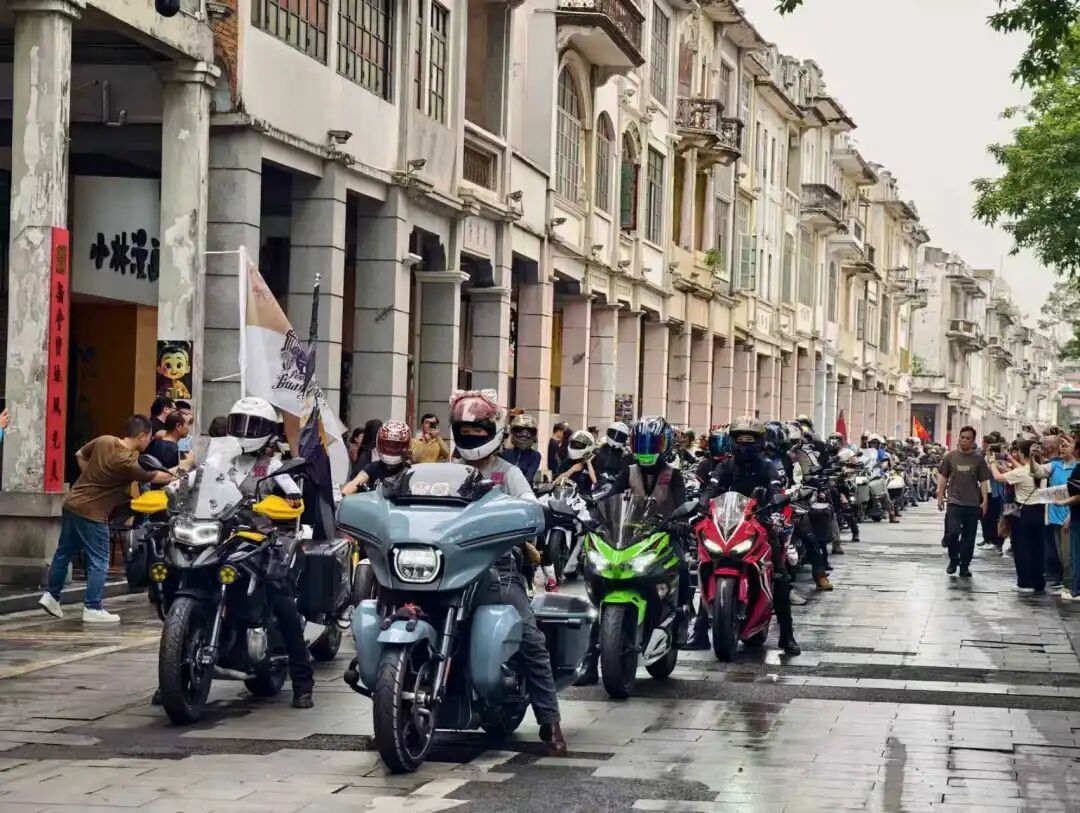 重头戏必须是超100台机车组成的巡游方阵!15:00准点从五邑华侨广场发车,6.4公里路线一路串联蓬江核心地标,不管是车手报名参与,还是沿线蹲点打卡,都能拉满氛围感。