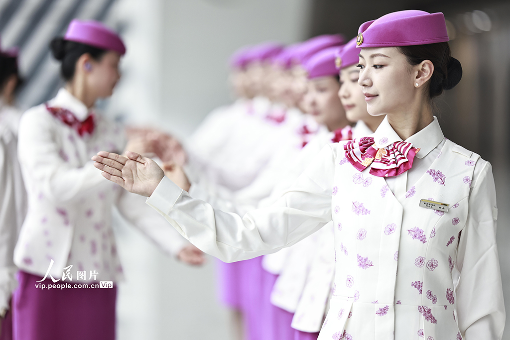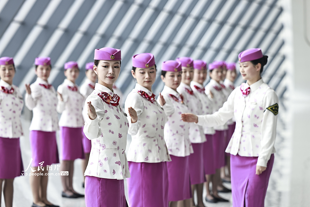 igao91精品久久久久久中国铁路成都局集团有限公司重庆客运段组织动车一队、二队、四队乘务员开展礼仪培训。培训重点围绕站姿、蹲姿、手势指引等环节进行强化训练,着力提升乘务人员的窗口服务形象。苏志刚摄(人民图片网)" />